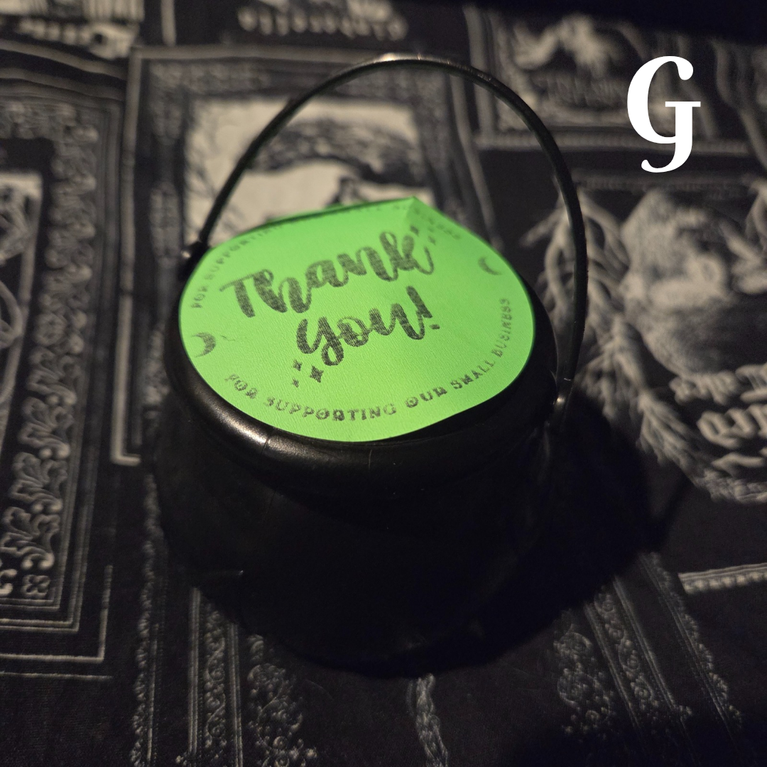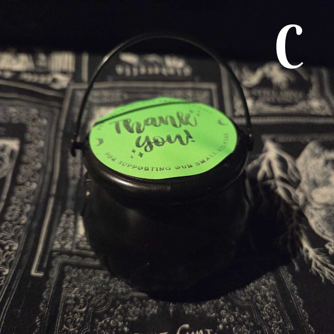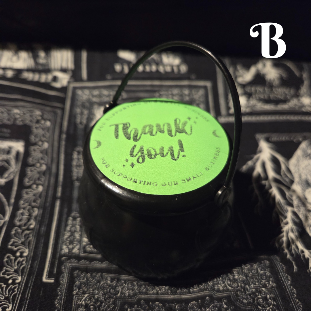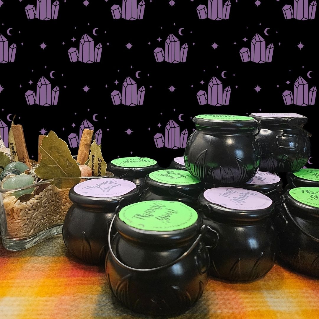 Inside are individually wrapped crystal goodies, each one a surprise waiting to be unwrapped. These cauldrons are pre-packed and labeled giving you the magical opportunity to use your intuition to see which one you are being called to.